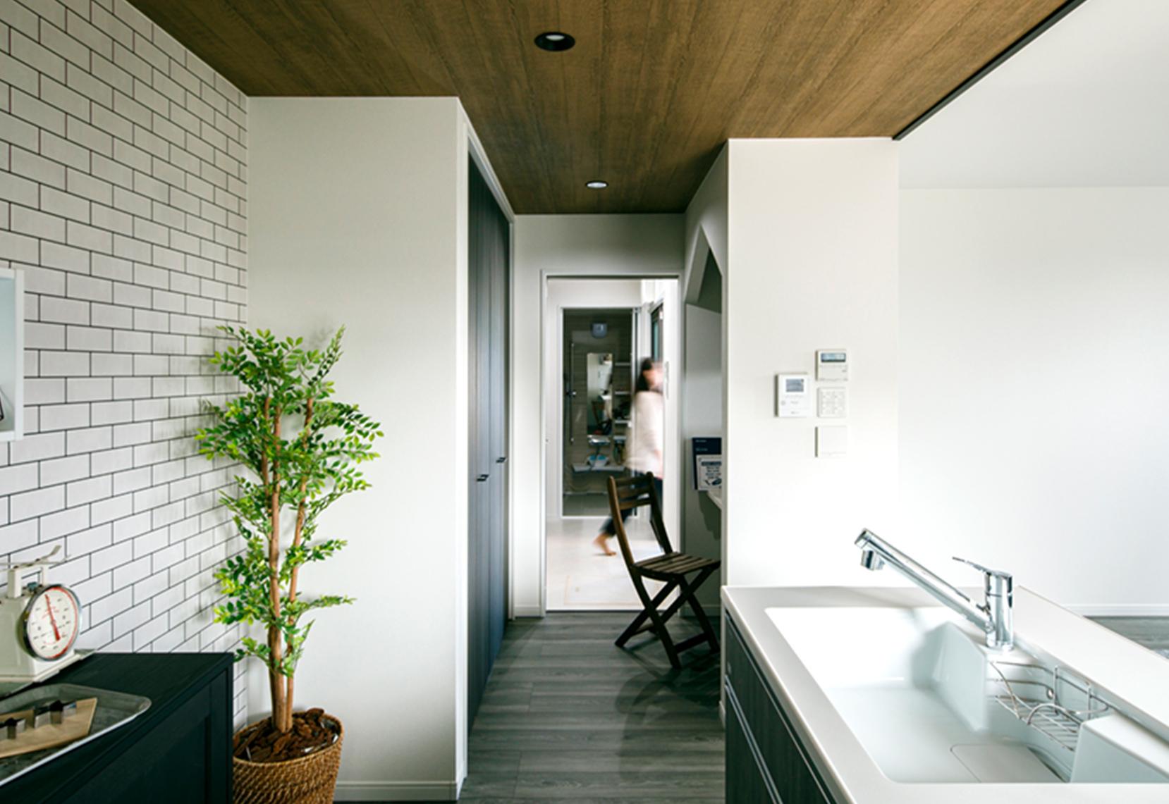 キッチンから水回り、そして玄関へと抜けるぐるぐる導線をプランニング。